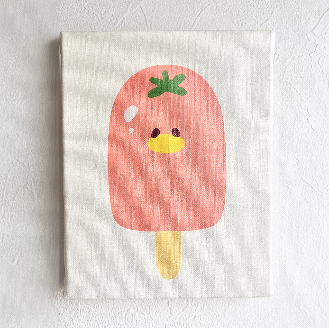 ぜひこの可愛らしいトマトアイスキャンディーキャンバスイラストをお手元に取り入れて、お部屋を彩ってみてください。アートと一緒に楽しく、素敵な空間作りができますよ。